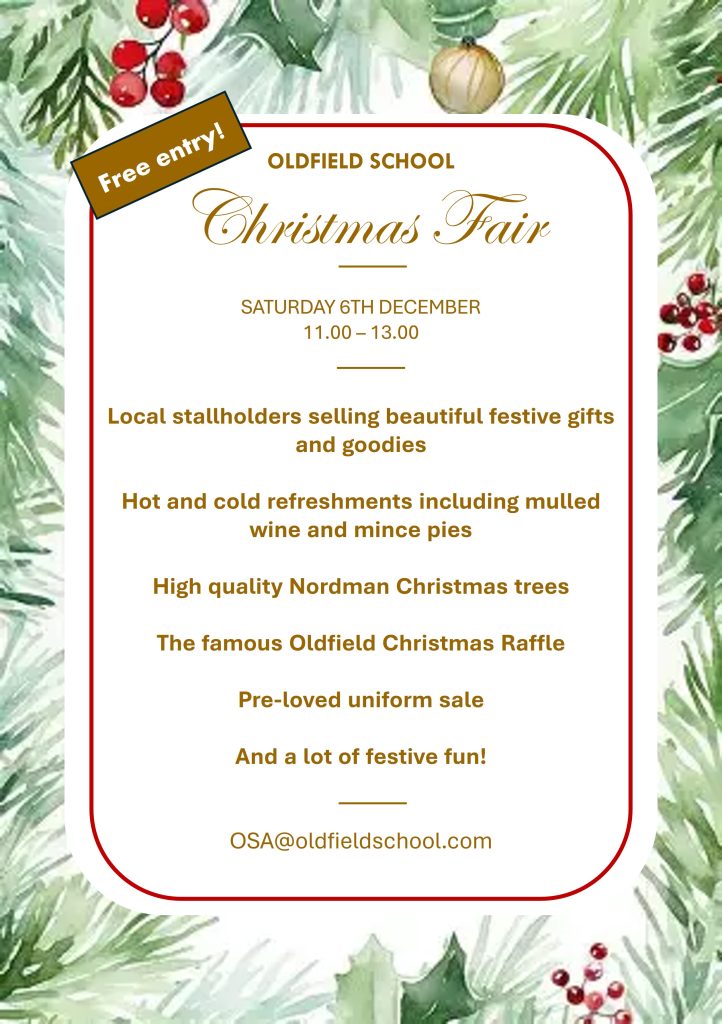 OLDFIELD SCHOOL CHRISTMAS FAIR Saturday 6th December 11.00 – 13.00